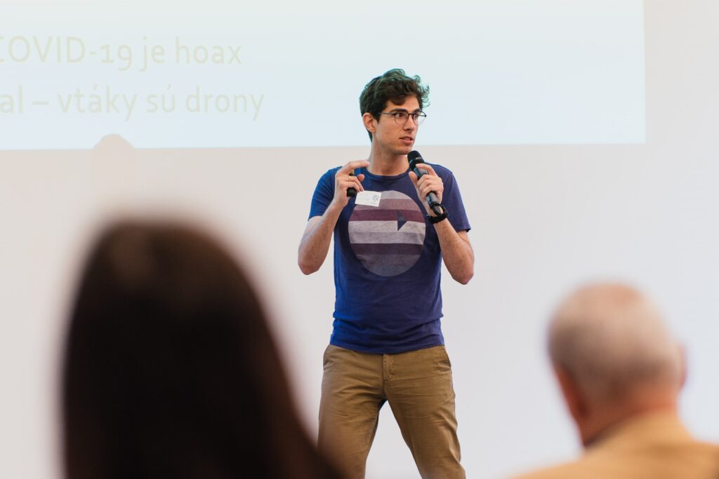 - Matúš Sloboda (Ústav verejnej politiky, FSEV UK), bývalý fact-checker, ktorý sa podelil o skúsenosti s overovaním faktov vo verejnom priestore. Okrem praktických tipov na ochranu pred dezinformáciami predstavil aj vzorce, ktoré nám pomôžu identifikovať nespoľahlivé správy a kriticky hodnotiť informácie z médií.